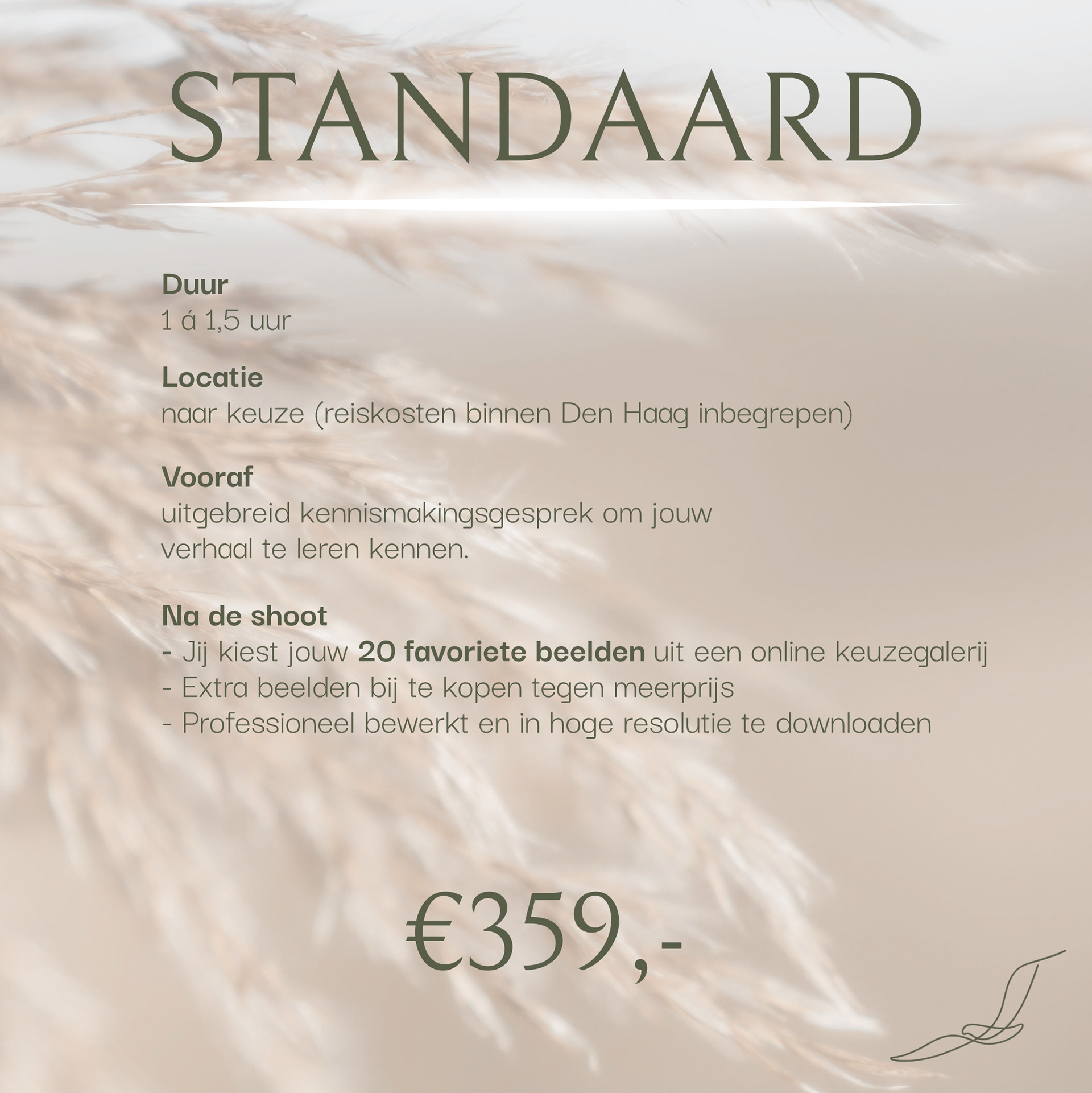 Uit ervaring weet ik dat verbinding vooraf de kwaliteit van de beelden verhoogt. Het neemt spanning weg, maakt de shoot ontspannen en zorgt dat jouw unieke verhaal zichtbaar wordt.